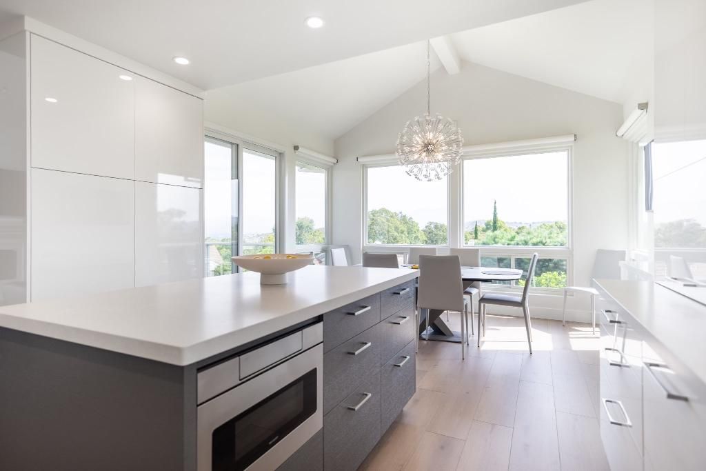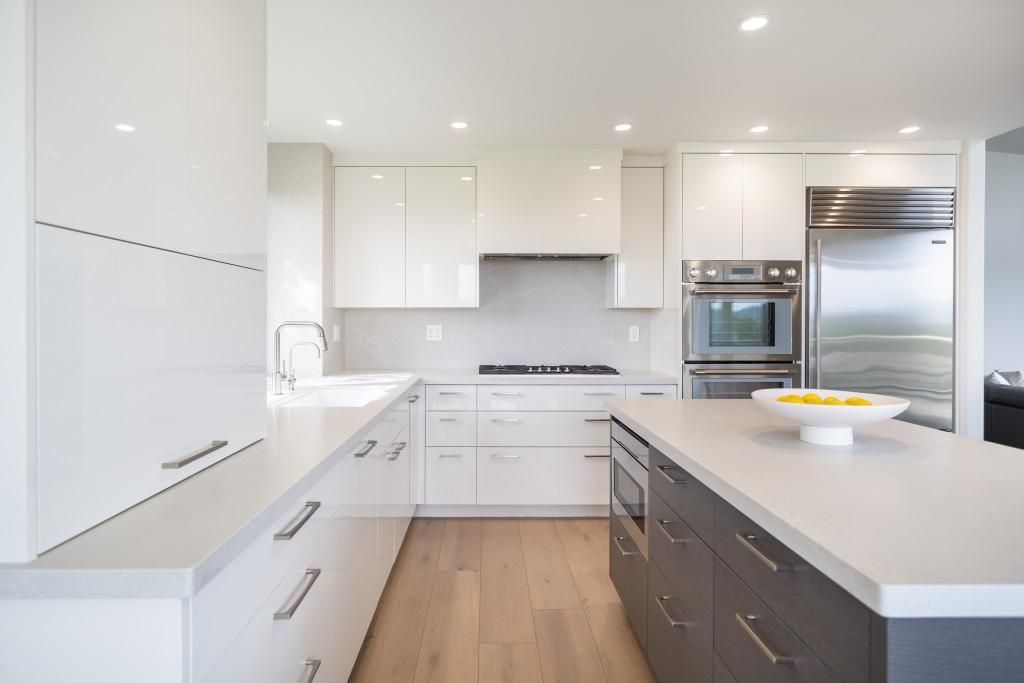 We designed this European contemporary style remodel for our clients in Newport Beach, CA. The custom cabinets are high gloss with full overlay fronts.